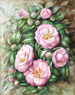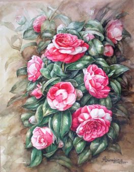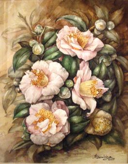 aguarela, painel em azulejo e porcelana clássica, tendo participado com a